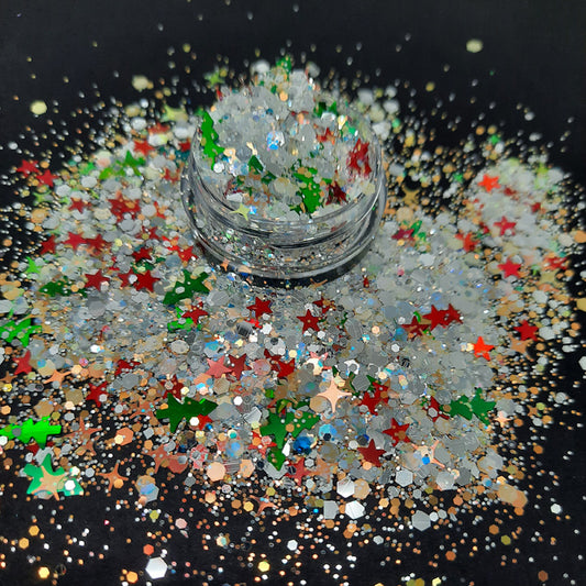 Christmas Tree + Star Nail Glitter