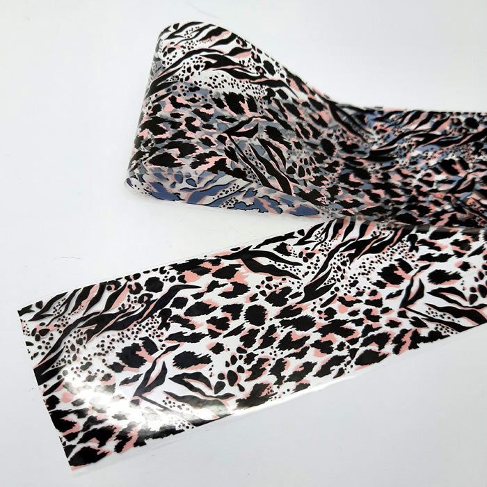 Animal Print with Pink Nail Transfer Foil. How beautiful this foil is! Lovely animal print design in pink and black on a clear backing.