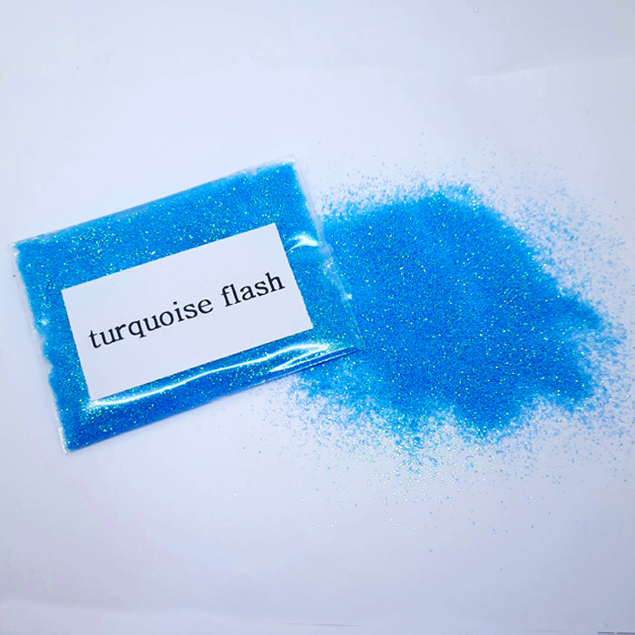 Flash Nail Glitter, Turquoise. Our range of Flash Nail Glitter is a relatively fine glitter, and very sparkly.