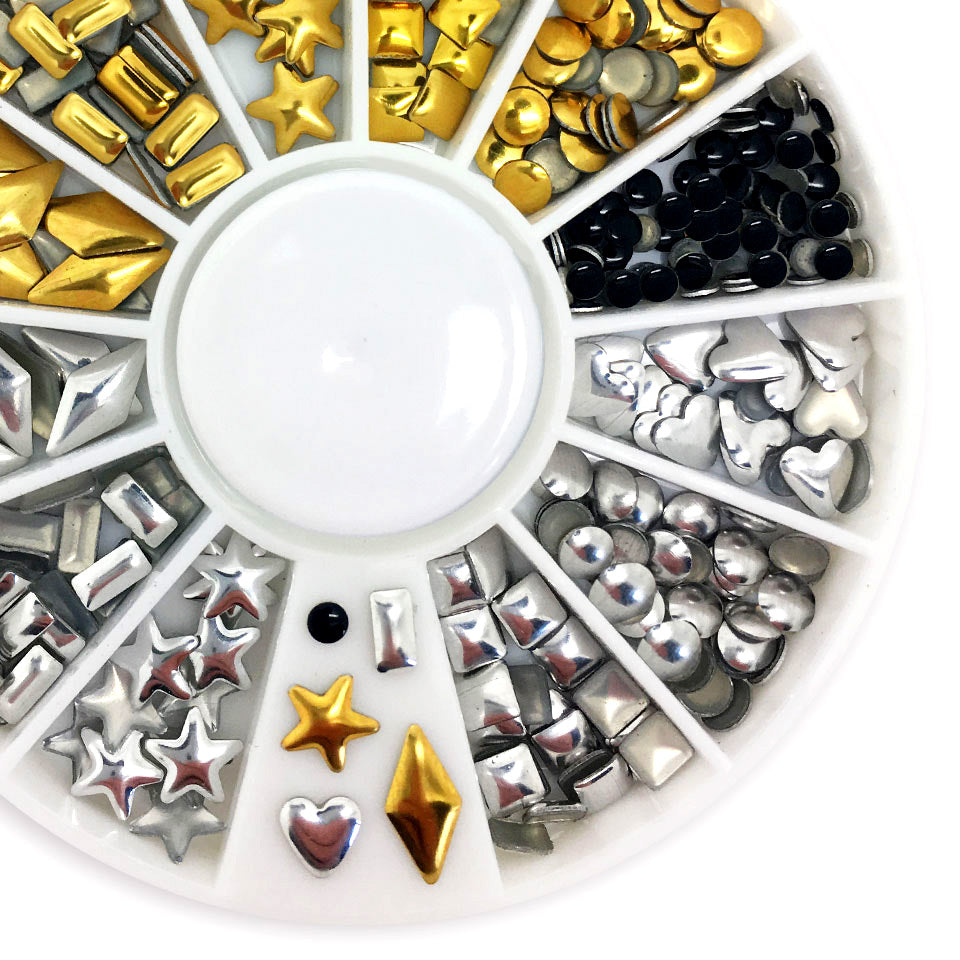 Gold, Silver + Black Nail Art, Shapes Mixed Sizes