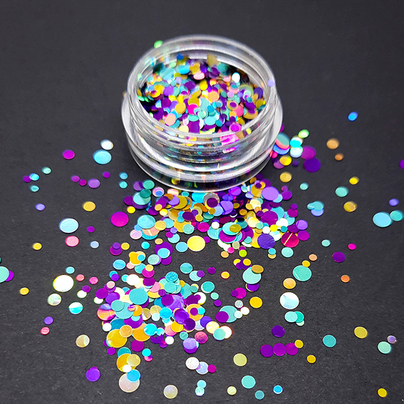 Round Nail Sequins, Gold, Blue + Purple