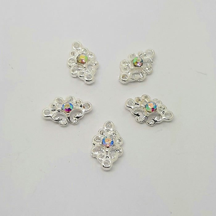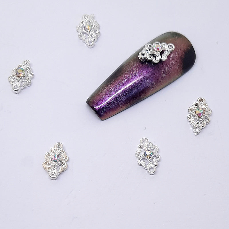 Silver Diamond Nail Charms With Gem, beautiful little ornate nail charms with a sparkly gem in the centre.