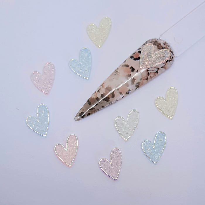 Sparkly Aurora Heart Nail Charms x 10. Beautiful soft pastel colours.
